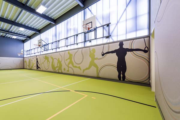 Pulastic® Sound Wall is een innovatieve wandbekleding die akoestische demping combineert met valbescherming, akoestische demping en esthetiek. Dit maakt het systeem bijzonder geschikt voor sporthallen, gymzalen en multifunctionele sportaccommodaties. De wanden zijn voorzien van duurzame, geluiddempende materialen en kunnen worden voorzien van afbeeldingen die aansluiten bij de wensen van de klant.