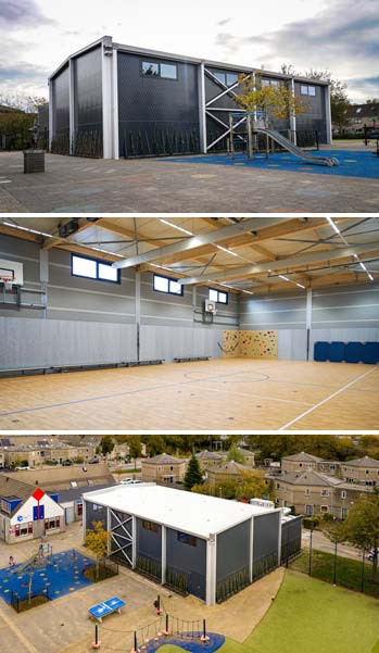 De gemeente Purmerend kampte met een tekort aan geschikte sportaccommodaties voor het bewegingsonderwijs. Op korte termijn was er behoefte aan een gymzaal voor het bewegingsonderwijs. In verband met ontwikkelingen in het gebied is gekozen voor een semipermanente variant, met een gebruiksduur van minimaal 10 en maximaal 15 jaar. Hierdoor was verplaatsbaarheid een belangrijk uitgangspunt. Daarom koos de gemeente voor een slimme tijdelijke oplossing direct bij de school.