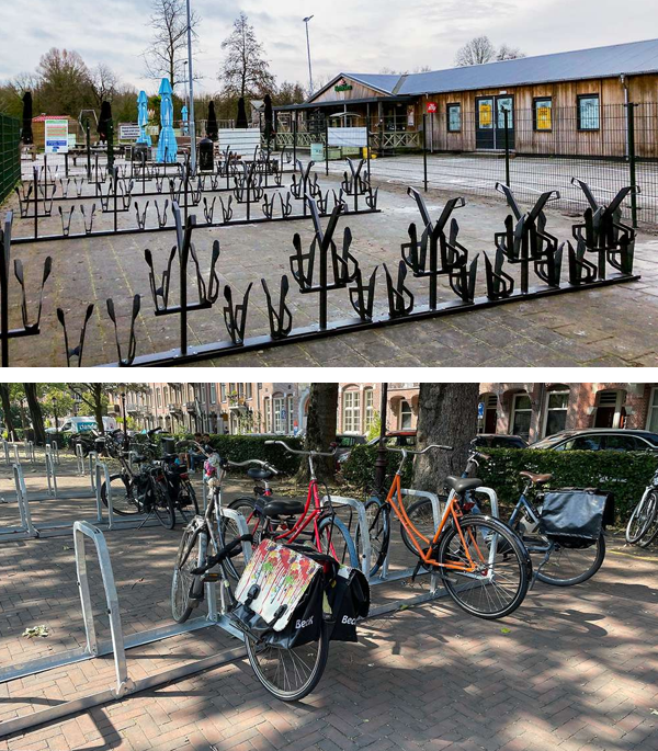 Beschadiging van fietsen: Veel gangbare rekken ('velgenkillers') buigen wielen krom of zijn ongeschikt voor moderne fietsen met dikke banden, bagagedragers of kwetsbare kabels.