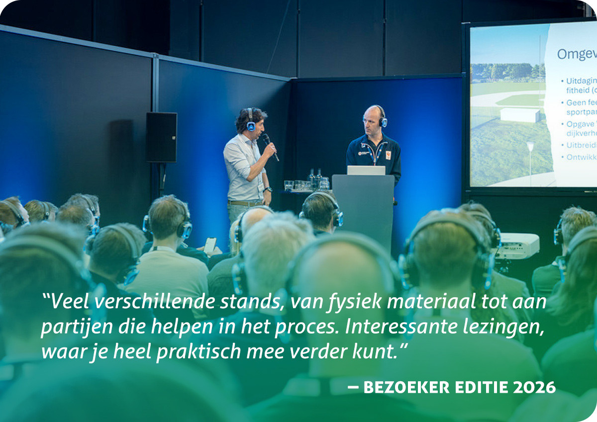 In volle zalen bij 21 sessies schoof je kosteloos aan bij sessies door experts van onder andere Kenniscentrum Sport & Bewegen, NOC*NSF en de RVO. Met name thema's als financiering, certificering en open sportparken trokken volle zalen. Bovendien sprak je op het Sportbondenplein 11 sportbonden én NOC*NSF. Zo was Expo Houten de perfecte plek om laagdrempelig te leren over actualiteiten, nieuwe ontwikkelingen en het beheer van jouw accommodatie/vereniging.